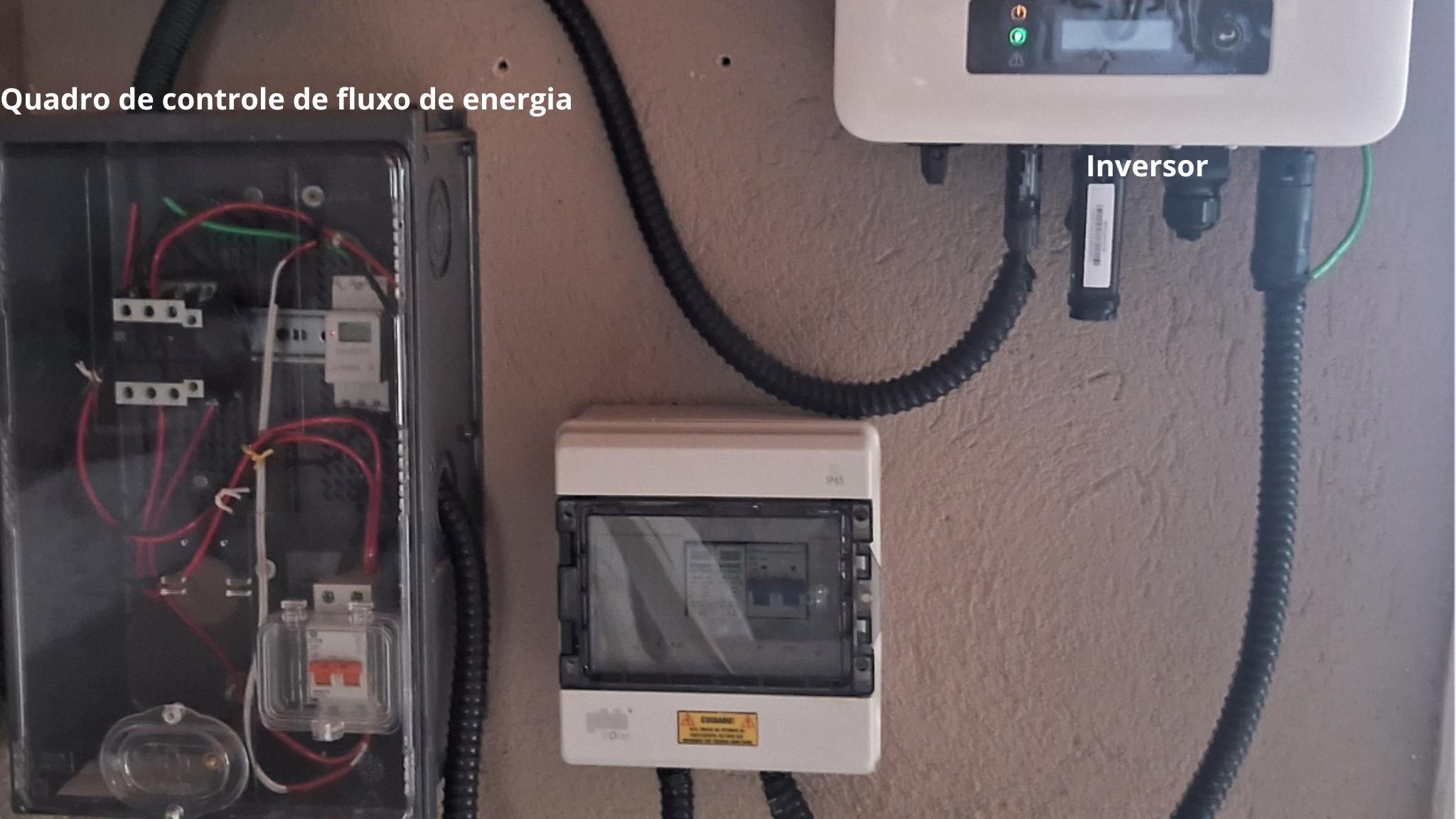 Nosso quadro de controle de fluxo de energia é uma interface entre a usina geradora e a rede da concessionária. Foi projetado para desconectar a usina da rede da concessionária em intervalos previamente programados, ou seja, aqueles em que há a inversão de fluxo na rede.